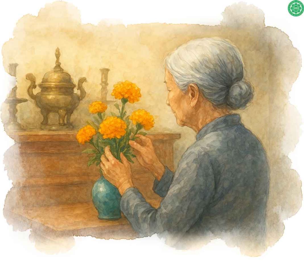 Giờ thì mẹ cũng bỏ tôi mà đi, dù đã rất nhiều lần tôi cầu nguyên cho mẹ cứ như hoa vạn thọ – mạnh khỏe sống hoài. Mẹ xa rồi, hoa vạn thọ vẫn nở đều đặn sau vườn nhà mỗi khi Tết đến. Chọn những cành hoa đẹp nhất đặt vào lọ gốm trước di ảnh của ngoại và mẹ, chợt nước mắt tôi rưng rưng!