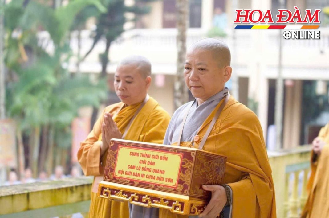 Buổi lễ diễn ra trong sự chứng minh của chư Tôn đức Tăng thuộc Ban Kiến đàn. Đại Tăng đã tác pháp cung thỉnh Giới bổn truyền trao cho Ni chúng, toàn thể giới tử đồng tâm thanh tịnh, nhất niệm cầu giới. Nghi thức cung thỉnh giới bổn được cử hành đúng pháp tướng giới đàn, biểu trưng cho tinh thần tôn kính giới luật và ý chí tiếp nối mạng mạch Phật pháp, bởi “Giới luật là thọ mạng của Phật pháp – Giới luật còn thì Phật pháp còn.”