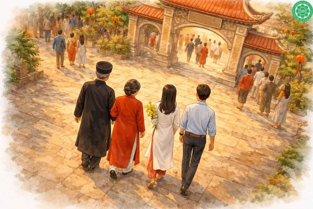 Khi những chùm pháo hoa cuối cùng tan dần vào hư không, để lại trên bầu trời một làn khói mỏng lang thang vô định, cũng là lúc lòng người lắng lại trong khoảnh khắc thiêng liêng nhất của đất trời. Giữa cái thời khắc chuyển giao cũ – mới, gia đình tôi lại cùng nhau thực hiện một chuyến hành trình đã thành nếp quen: đi chùa đêm Giao thừa. Đó không chỉ là một nghi lễ tâm linh mà là cuộc hành trình tìm về bản sắc, nơi những tình cảm thiêng liêng nhất được thắp sáng dưới mái chùa tôn nghiêm.