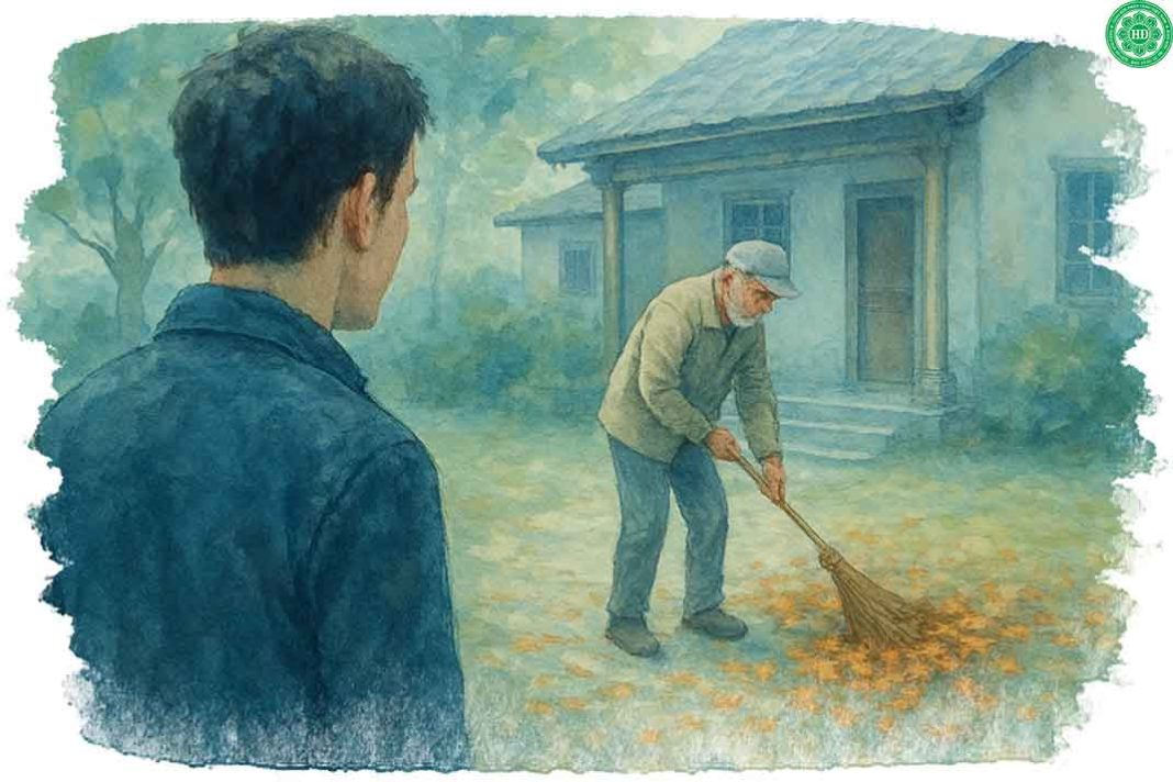 Cũng nhờ tiếng chổi của ông mà tôi lớn lên trong sự chăm chỉ, cần mẫn. Quét nhà không chỉ là công việc thuần túy mà còn là cách giúp tôi tính cần cù, tỉ mẩn và không vội vàng trước những gian khó của cuộc đời.