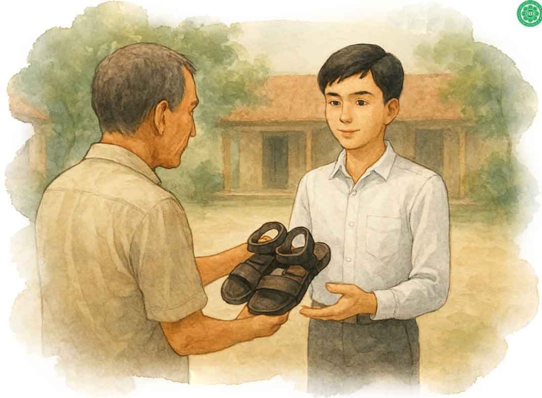Những đôi dép trong nhà lúc nào cũng được cha mang đi chà rửa sạch sẽ và sắp xếp một hàng dài ngay ngắn. Nhất là dép của cha mang, không khi nào cũ (chỉ có mòn) và luôn trong “tư thế” theo chiều bàn chân khi nằm ở giường. Con nhớ hồi cấp ba, có lần thức dậy chạy tìm đôi giày để học tiết thể dục mà chẳng thấy đâu. Một hồi sau cha từ chợ mang đôi giày mới về đưa cho con rồi nói: “Giày kia rách hết rồi, sao không nói với mẹ cha? Hừng sáng cha đem giặt và phơi rồi, để cha cất làm kỷ niệm”. Thì ra sáng giờ cha đạp xe ra chợ làng để mua cho con đôi giày thể dục mới. Và con thật ngưỡng mộ khi đến tận giờ, đôi giày cũ kỹ ấy vẫn còn nằm trong tủ để đồ…